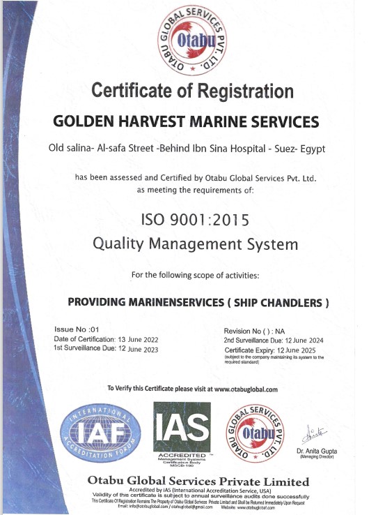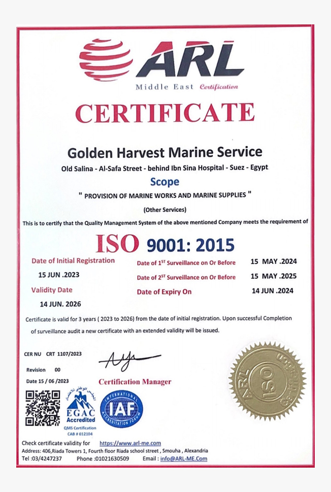 Golden Harvest Marine Services company offers various services related to marine activities and transportation, such as ship maintenance and repair, crew management, offshore support, and logistics for efficient and safe marine operations.